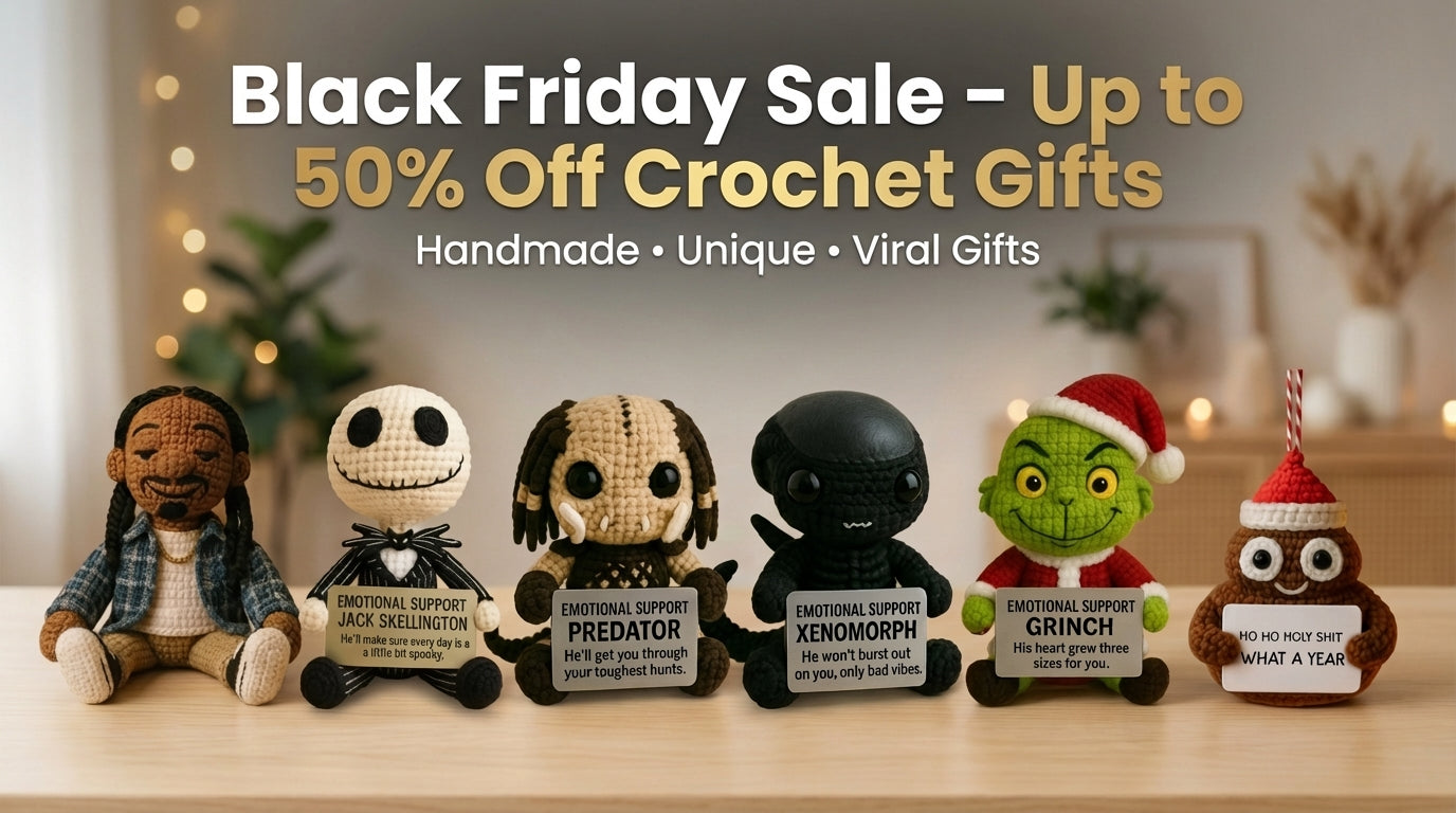 Hand-crocheted with love (and maybe a little dark humor), this spooky plush blends horror vibes with hilarious emotional support.