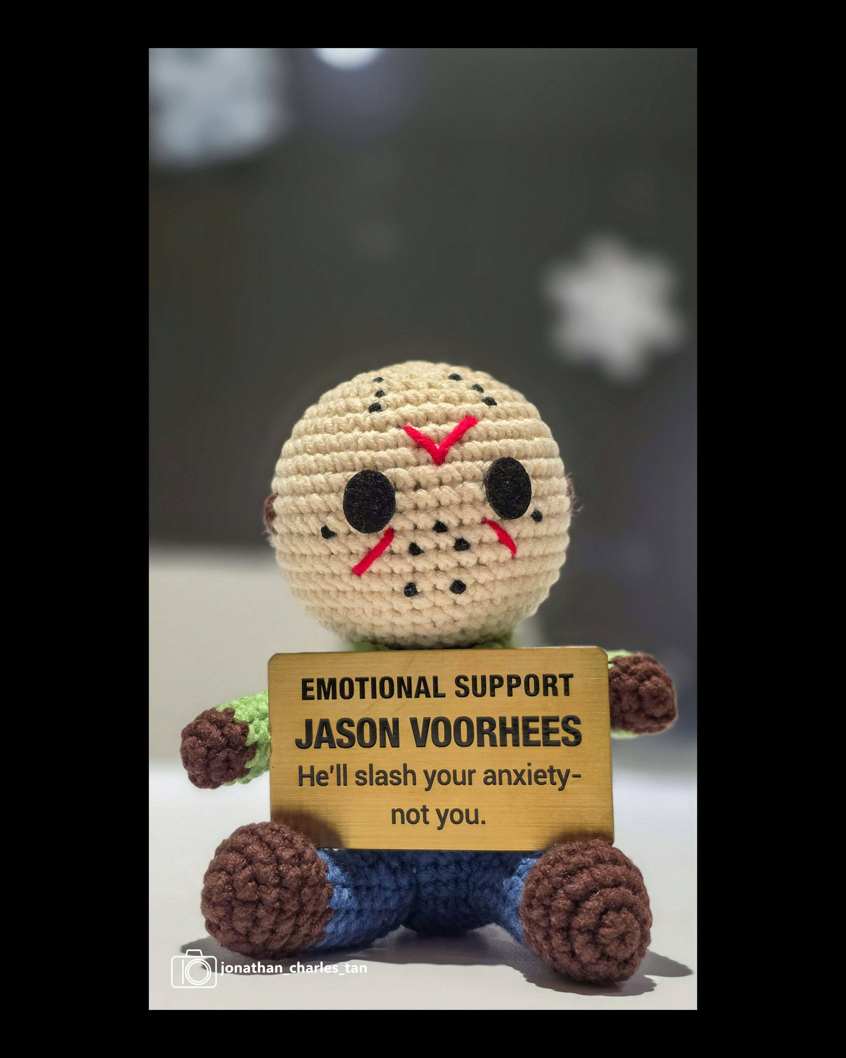 Bring a little spooky comfort into your life with our Horror Characters Crochet Emotional Support Dolls.