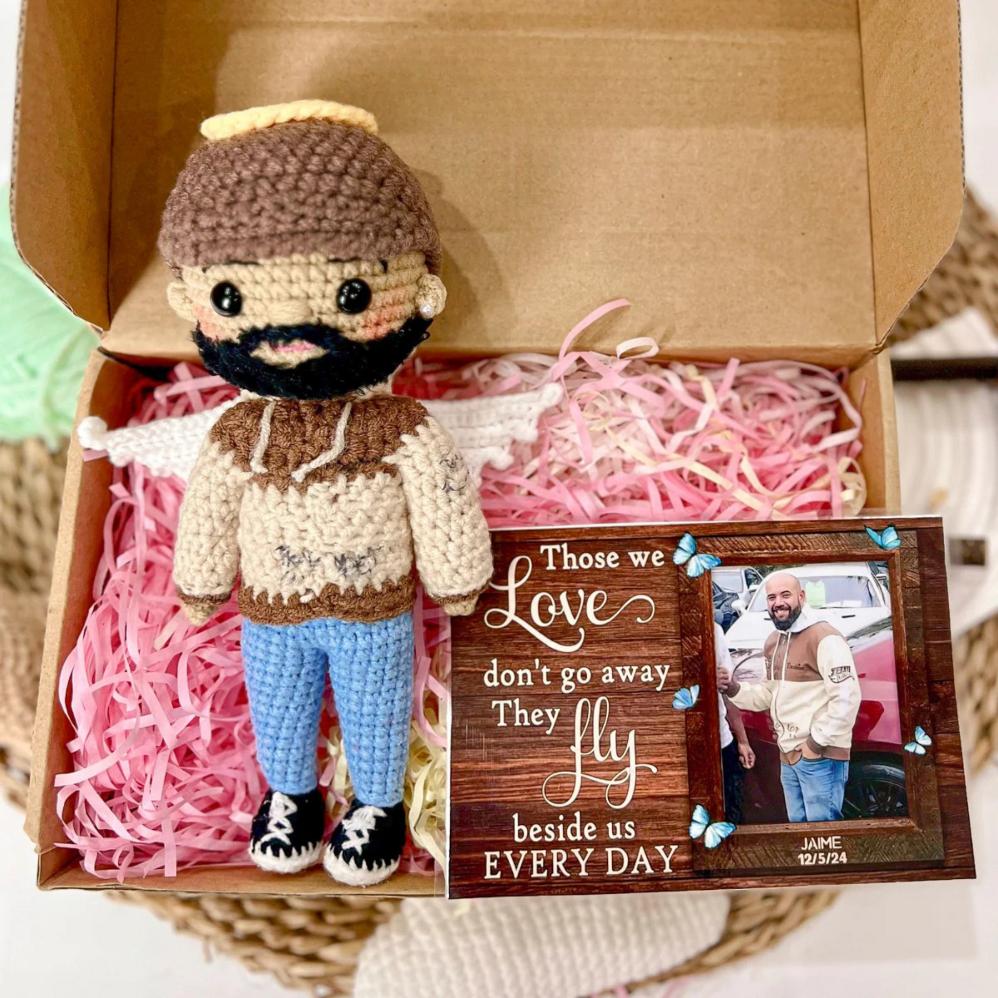 Personalized Memorial Crochet Doll with Photo Card "Those We Love Don't Go Away"